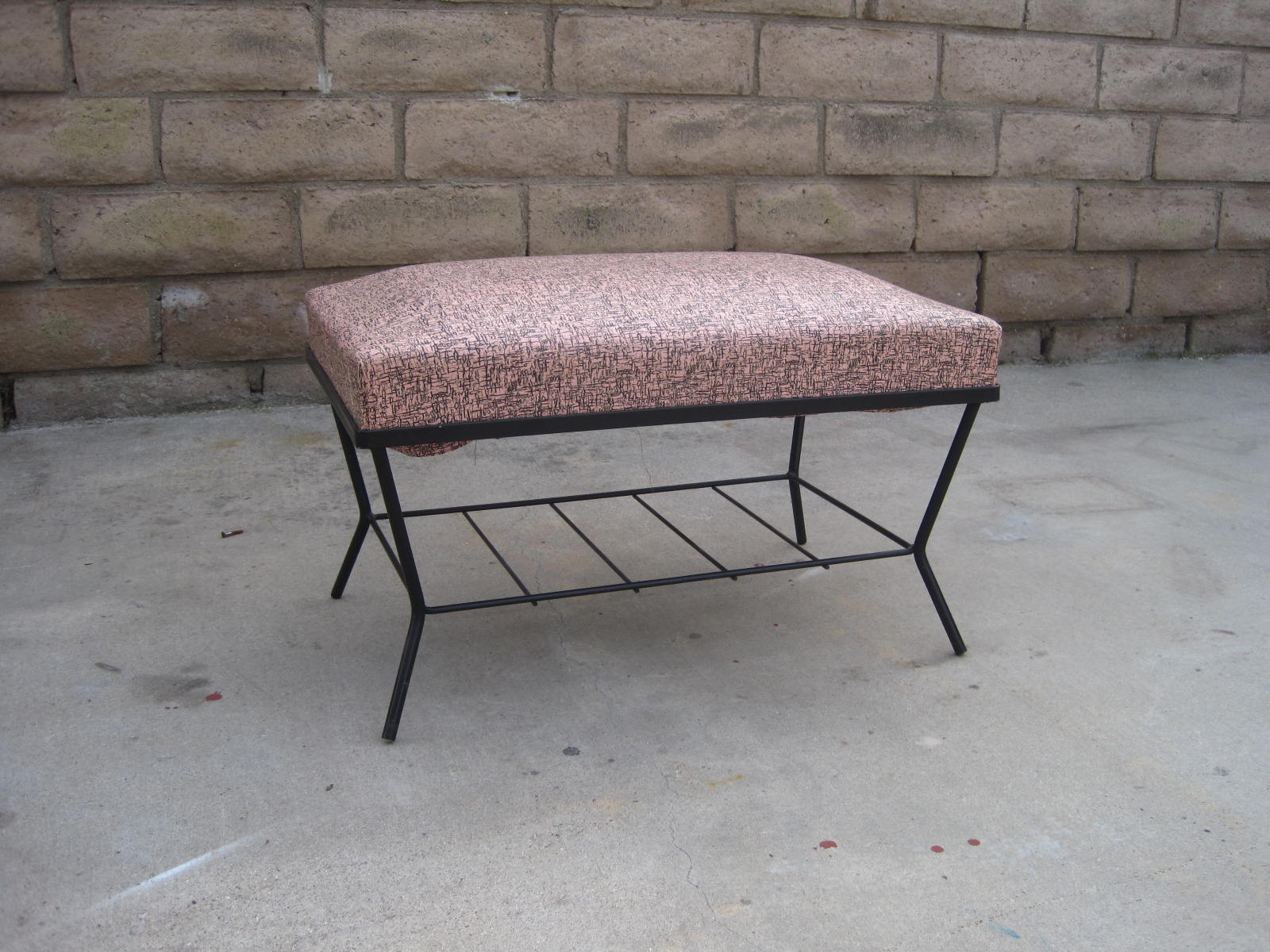 I also picked up these 2 items from the same cool girl, Darcy. Usually where you find one mid century piece for sale you find others. Check out this awesome little table with white top and the fantastic 50's stool/ottoman with it's original pink and black upholstery: